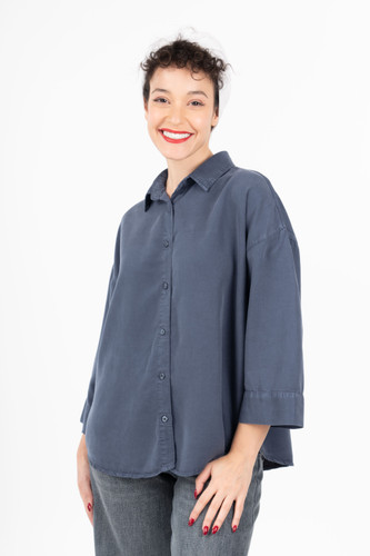 شومیز سیلک کتان کروپین (cropin) گرم 1 آستین پاکتی بدون جیب گرم 1 آبی کاربنی 0006947