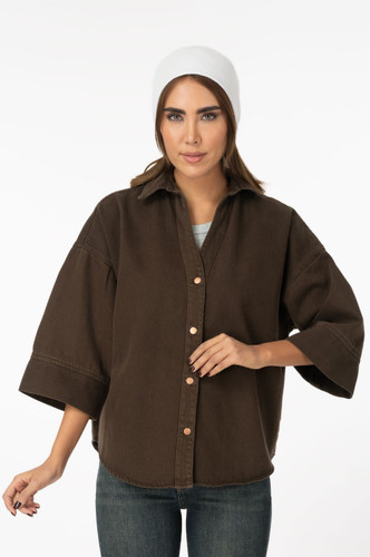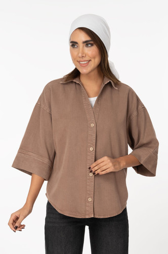 شومیز جین (Royal Jackpot Vesta) پایین هلال آستین سه ربع قهوه ای سوخته 209870