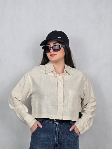 شومیز سیلک کتان کروپین (cropin) گرم 1 آستین پاکتی بدون جیب نوک مدادی 0006943