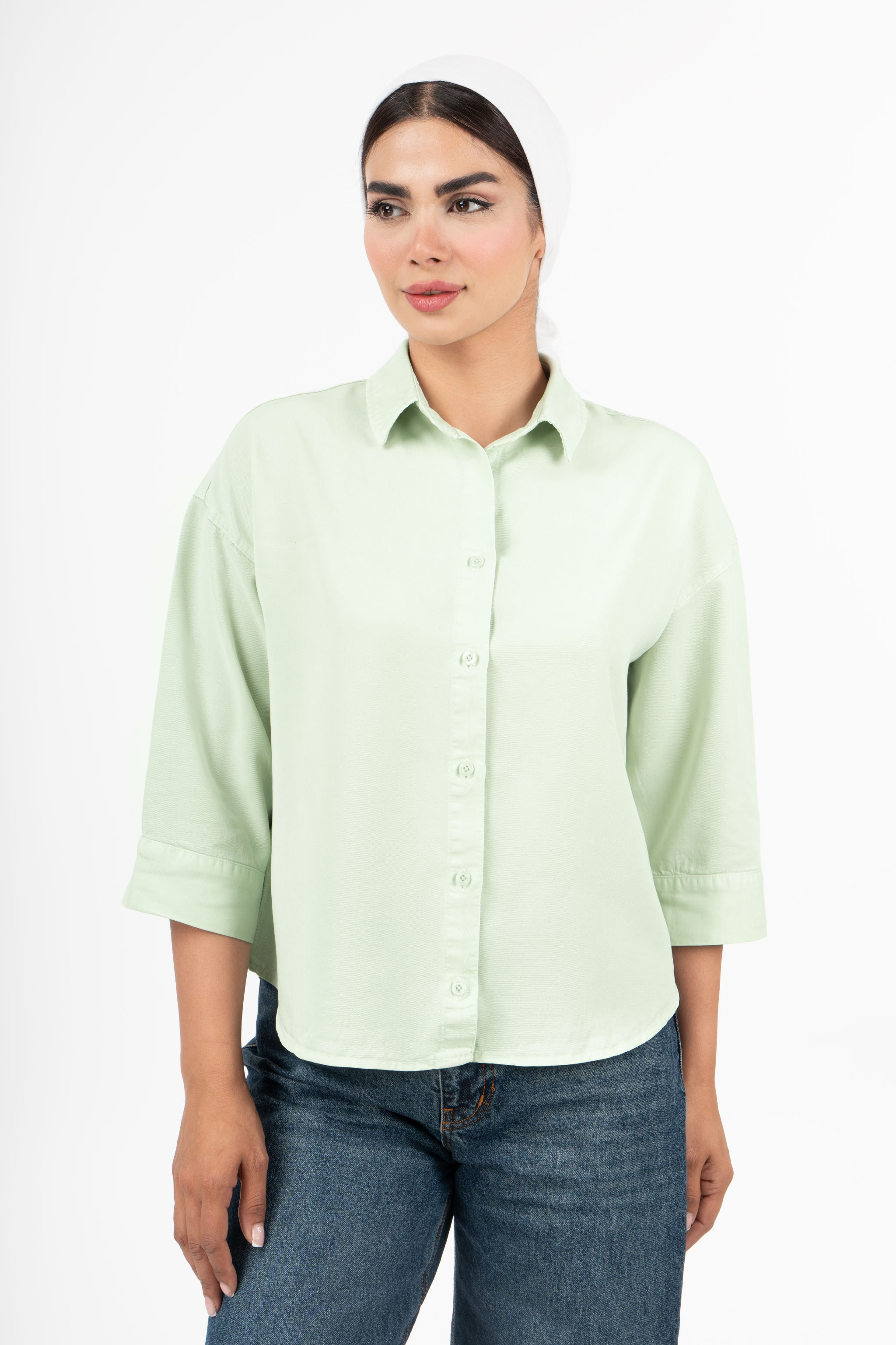 ناموجودشومیز سیلک کتان کروپین (cropin) گرم 1 آستین پاکتی بدون جیب سبز مغز پسته ای روشن 0006946