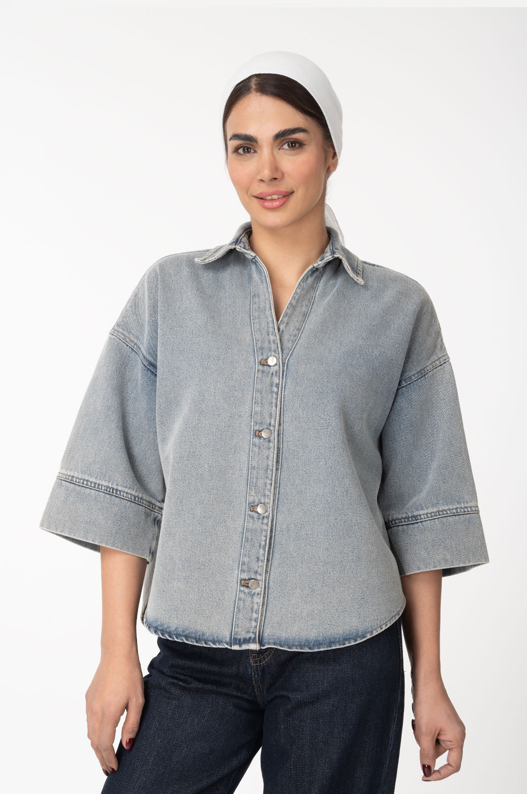 شومیز جین (Royal Jackpot Vesta) پایین هلال آستین سه ربع آبی روشن 2010130