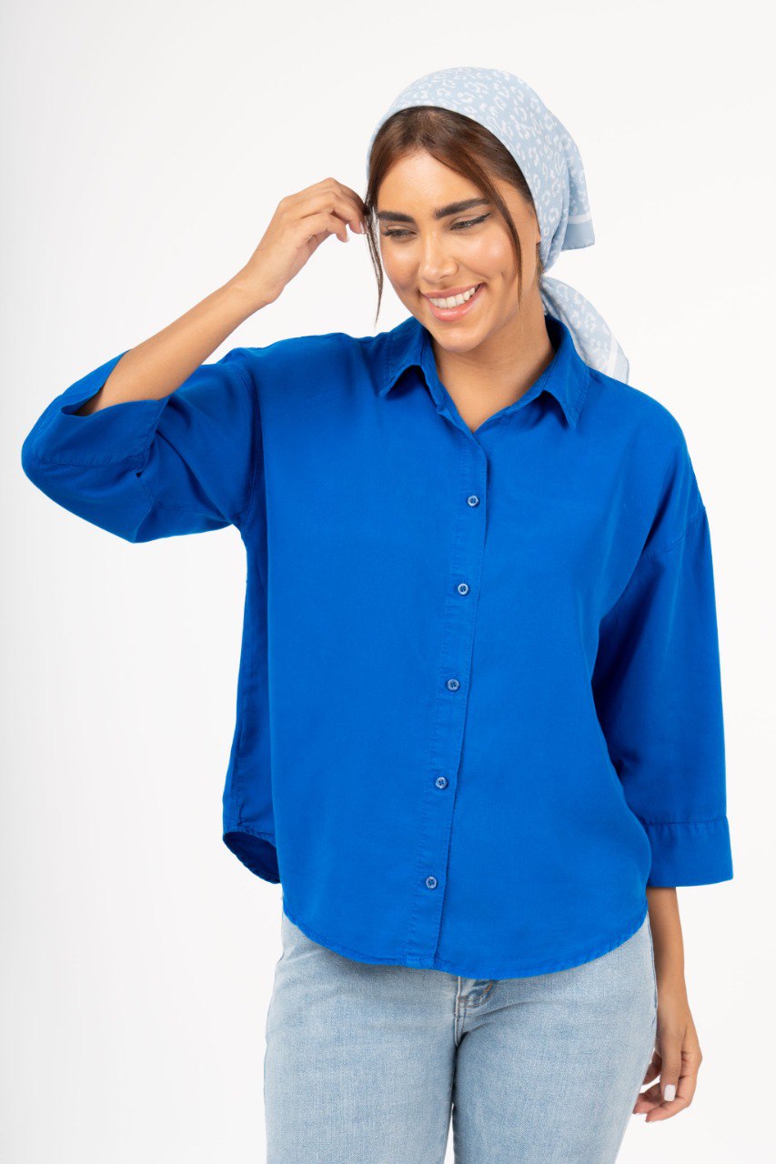 شومیز کتان وستا استین بلند قد 70 آبی روشن