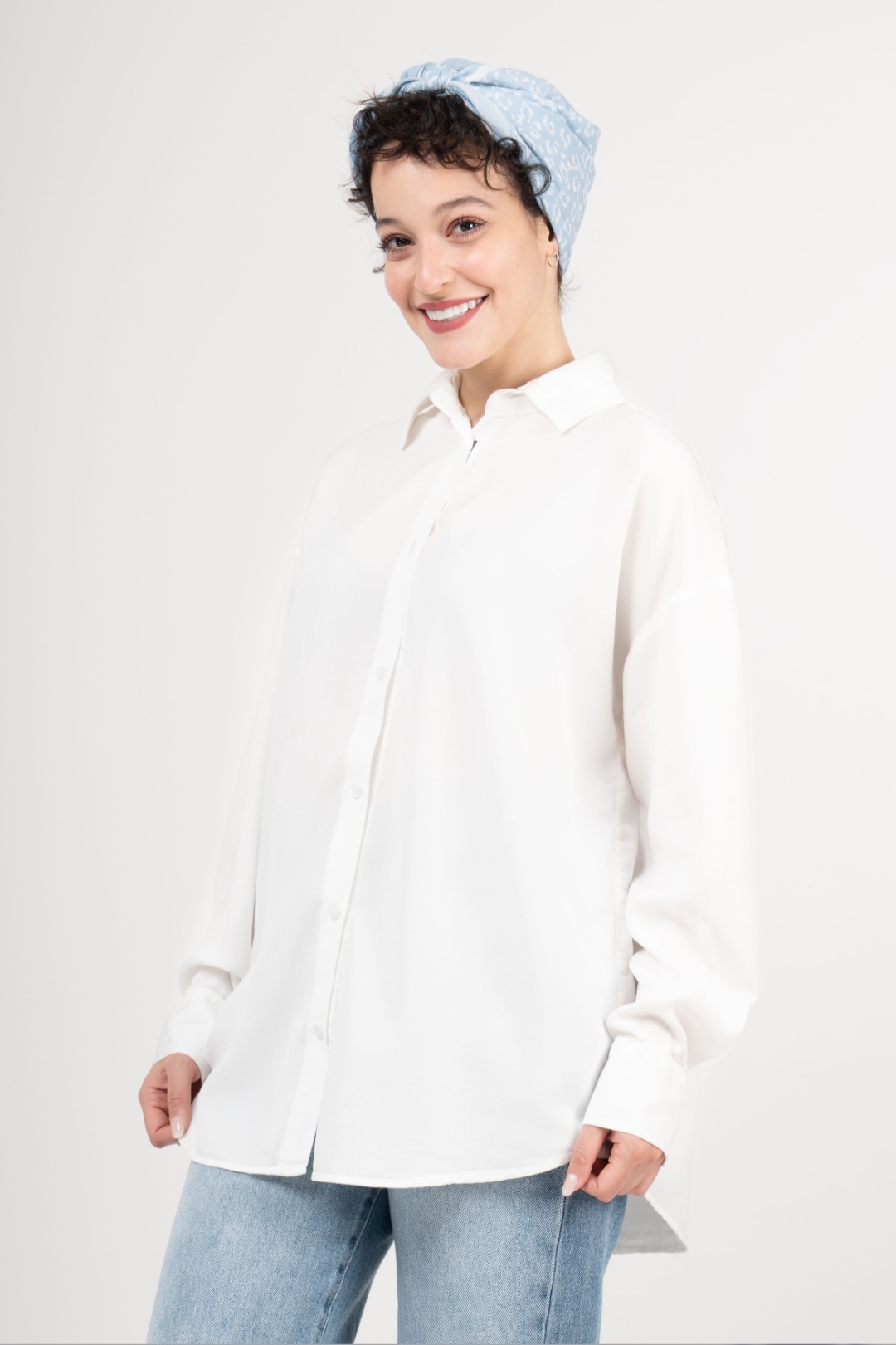 شومیز کتان rexo پایین هلال آستین سرخود قد 60 سفید
