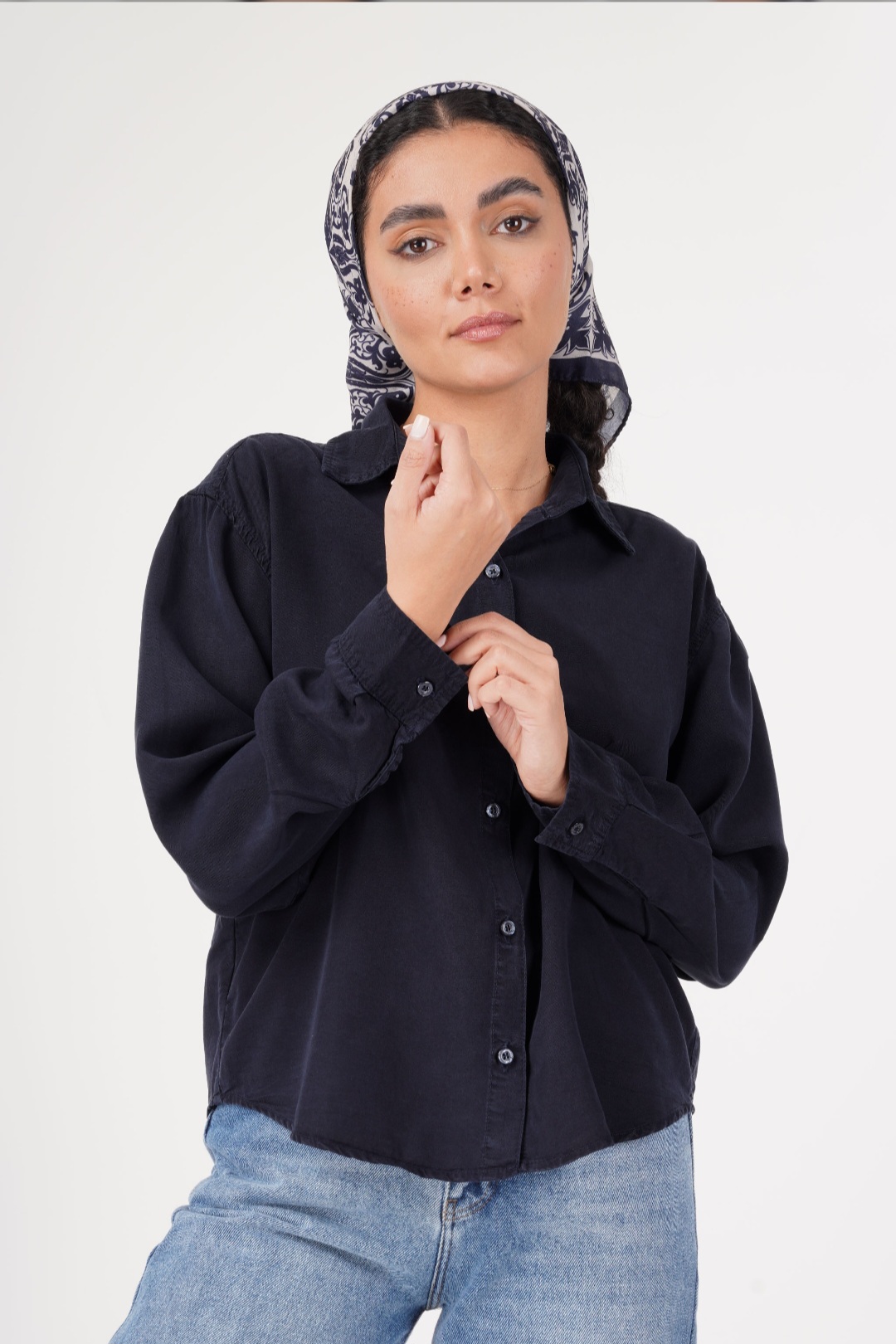 ناموجودشومیز cropin استین پاکتی بدون جیب قد 60 سرمه ای