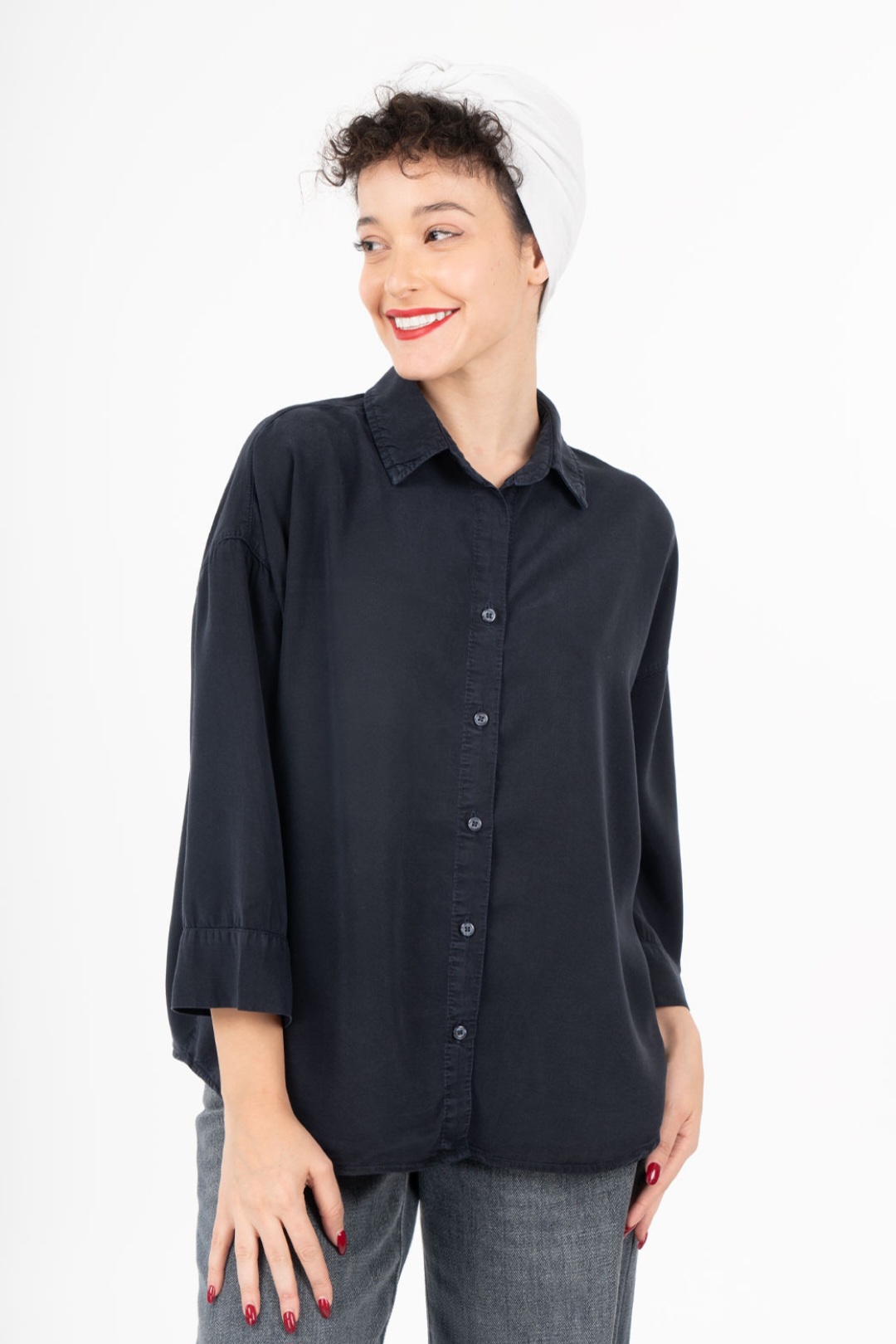ناموجودشومیز کتان EMMA استین سه دکمه 0006854 سرمه ای