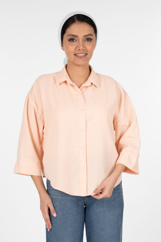 شومیز سیلک کتان کروپین گرم 1- آستین پاکتی بدون جیب گلبهی کد: 2010978