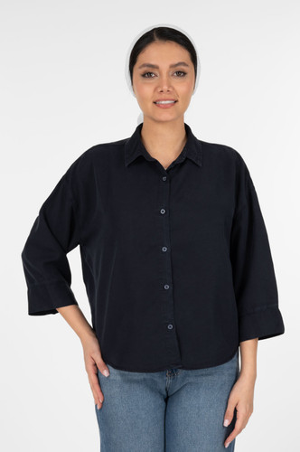 شومیز سیلک کتان کروپین گرم 1- آستین پاکتی بدون جیب سرمه ای کد: 2010976