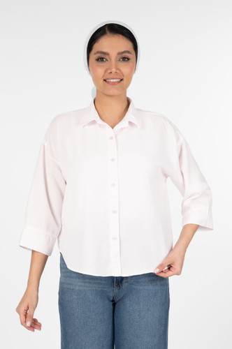 شومیز سیلک کتان کروپین گرم 1- آستین پاکتی بدون جیب سفید کد: 2010973