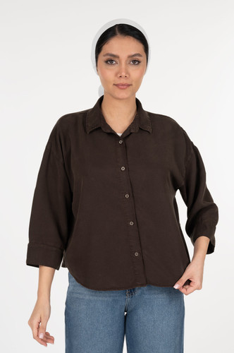 شومیز سیلک کتان کروپین گرم 1- آستین پاکتی بدون جیب قهوه ای سوخته کد: 2010971
