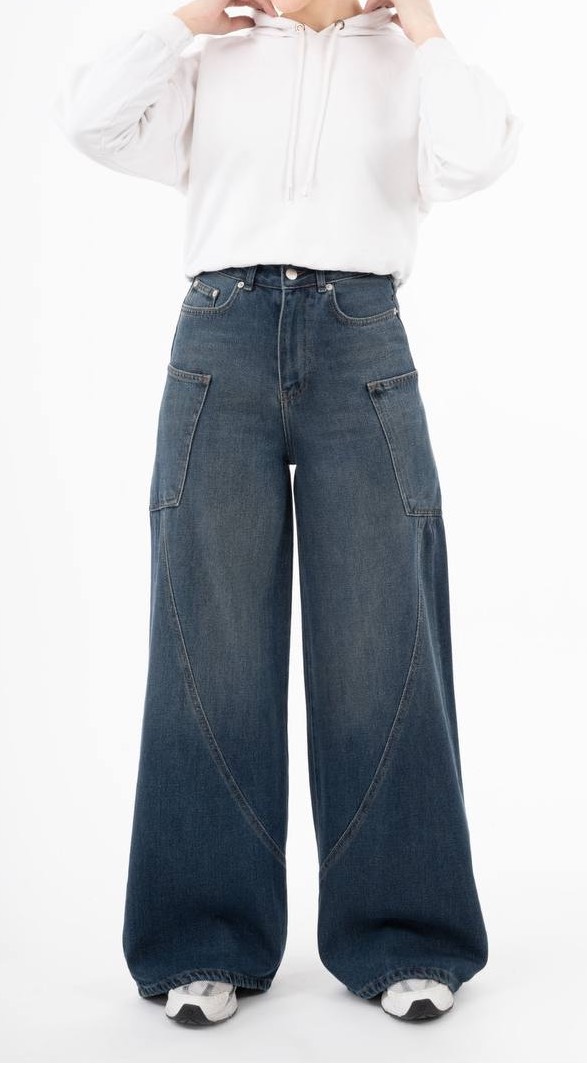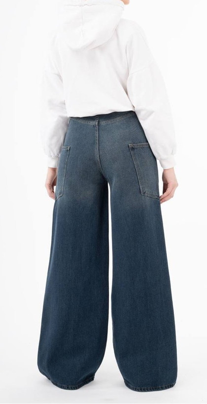 در رنگ آبی تیره برفکی مدل شلوار فول بگ می باشد.