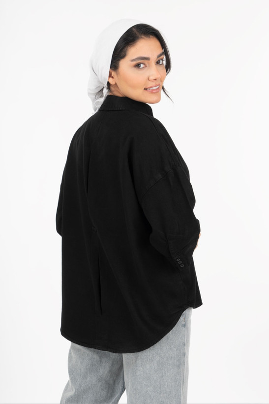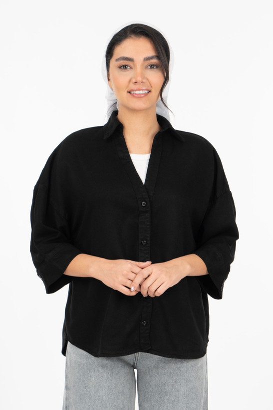 شومیز کتان EMMA استین سه دکمه رنگ مشکی 0006850