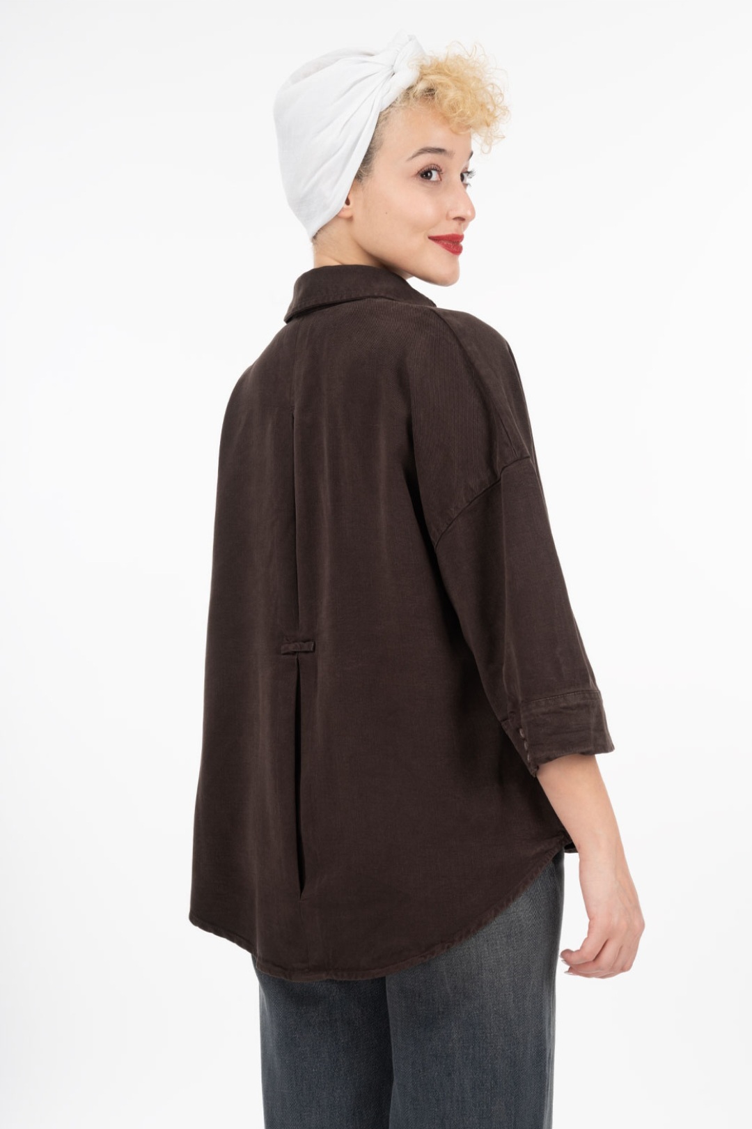 شومیز کتان EMMA سه دکمه قهوه ای سوخته0006851