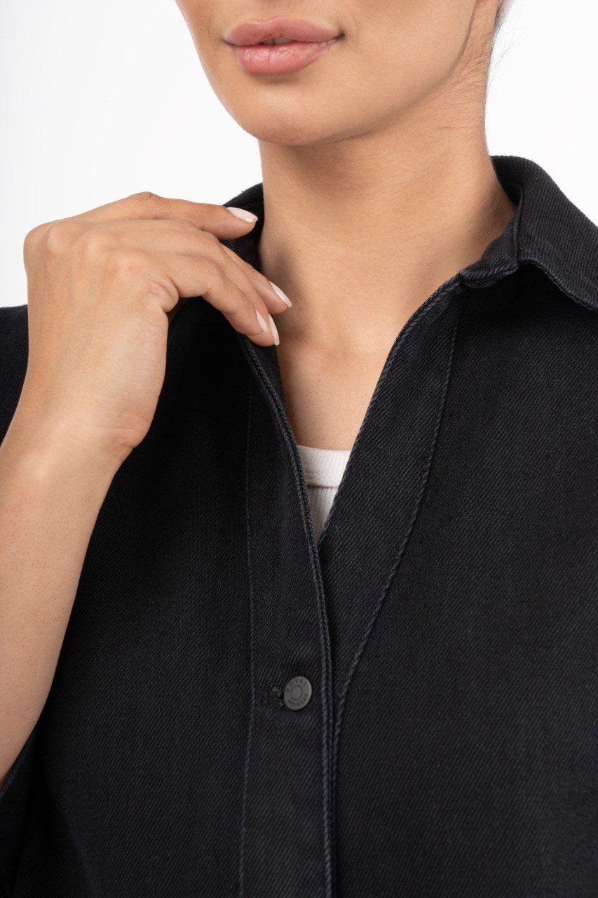 شومیز جین استین سه ربع ذغالی 209664