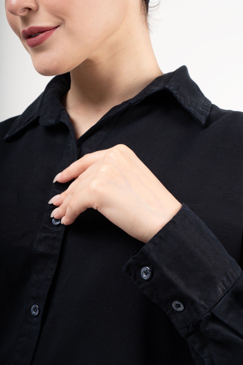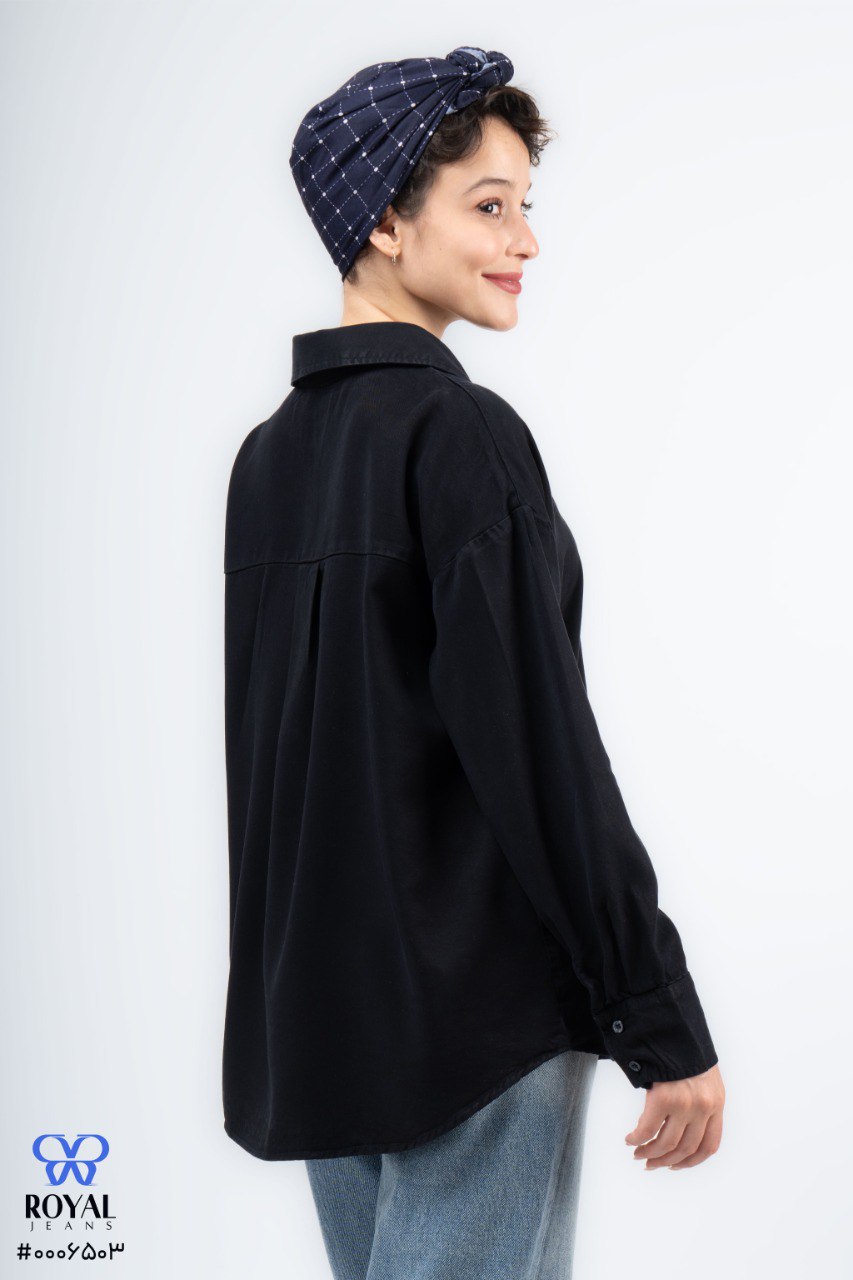شومیز کتان سیلک ملورین پایین هلال گرم 2 پایین هلال بدون جیب سرمه ای تیره 0006503