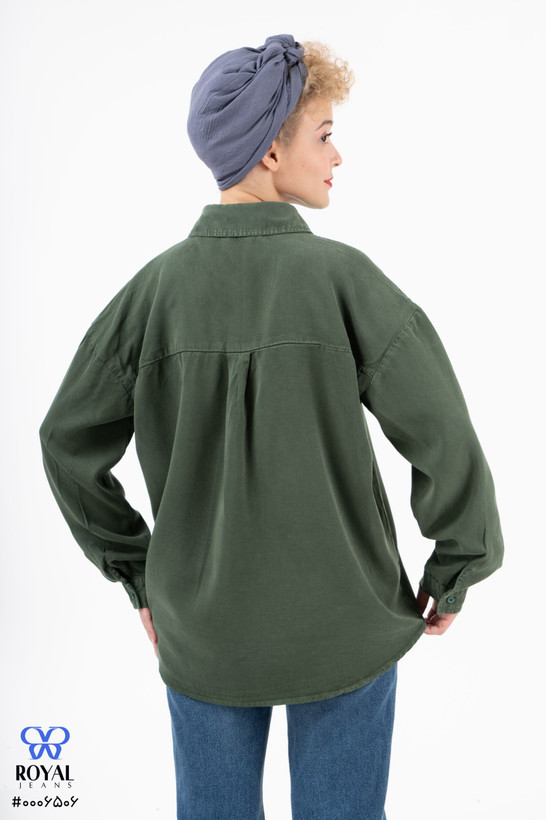 شومیز کتان سیلک ملورین پایین هلال گرم 2 پایین هلال بدون جیب سبز لجنی 0006506