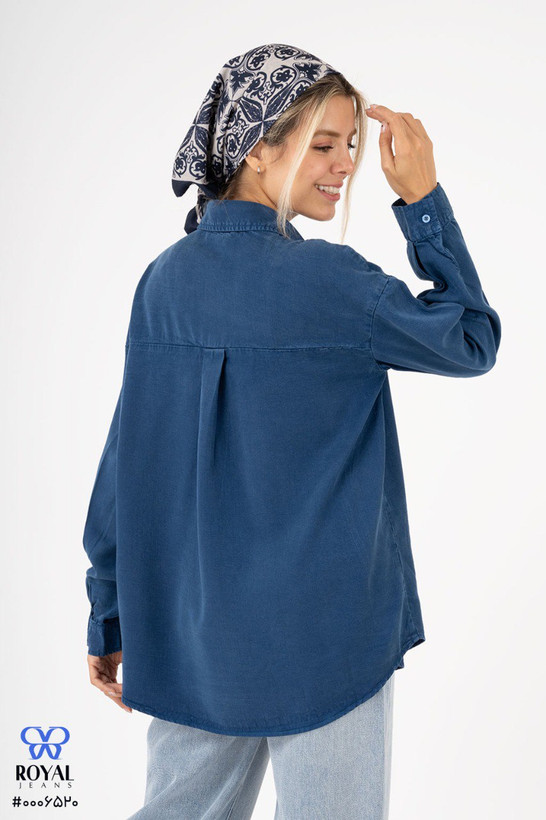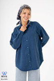 شومیز کتان سیلک ملورین پایین هلال گرم 2 پایین هلال بدون جیب آبی نفتی 0006520