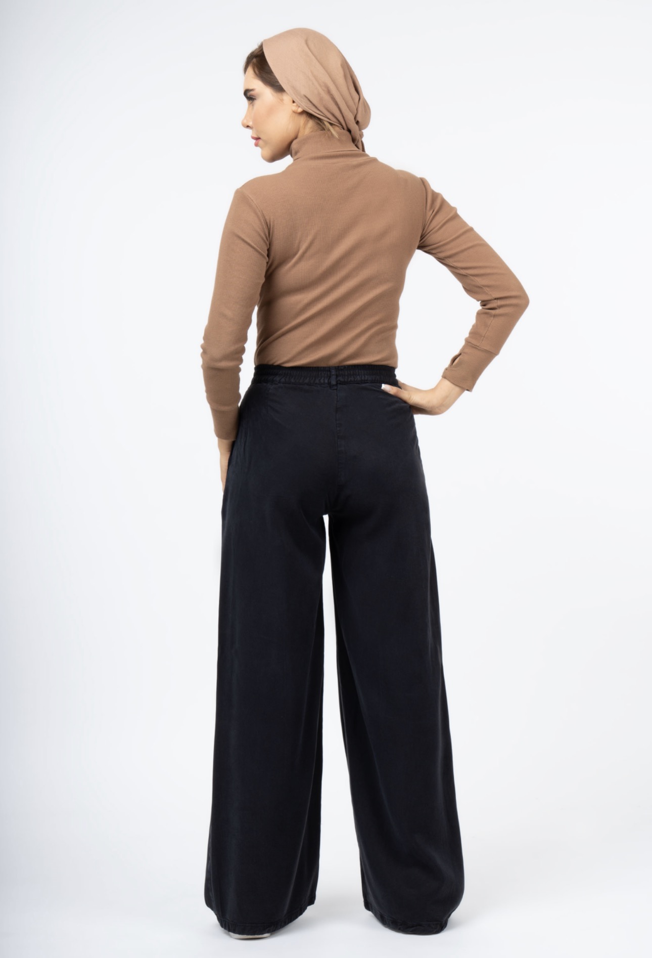 شلوار بگ سیلک پشت کش سرمه ای 0001401