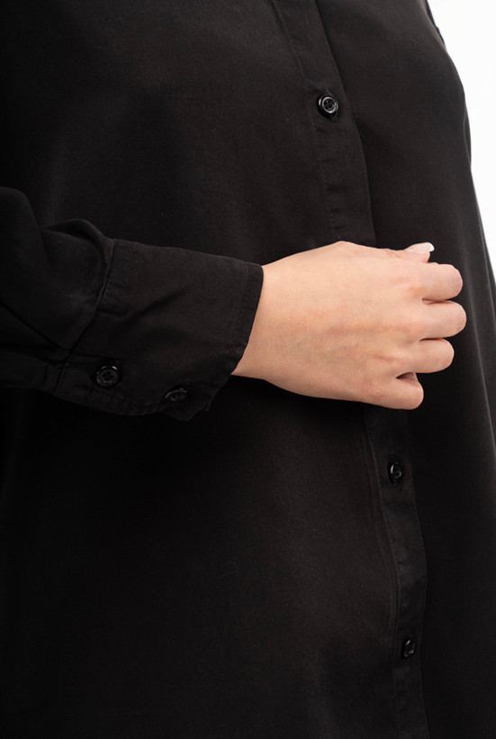 شومیز کتان سیلک ملورین پایین هلان جیب ل گرم 2 پایین هلال بدون جیب مشکی 0006519