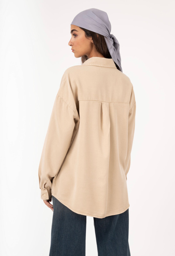 شومیز کتان سیلک ملورین پایین هلان جیب ل گرم 2 پایین هلال بدون جیب کرم 0006507