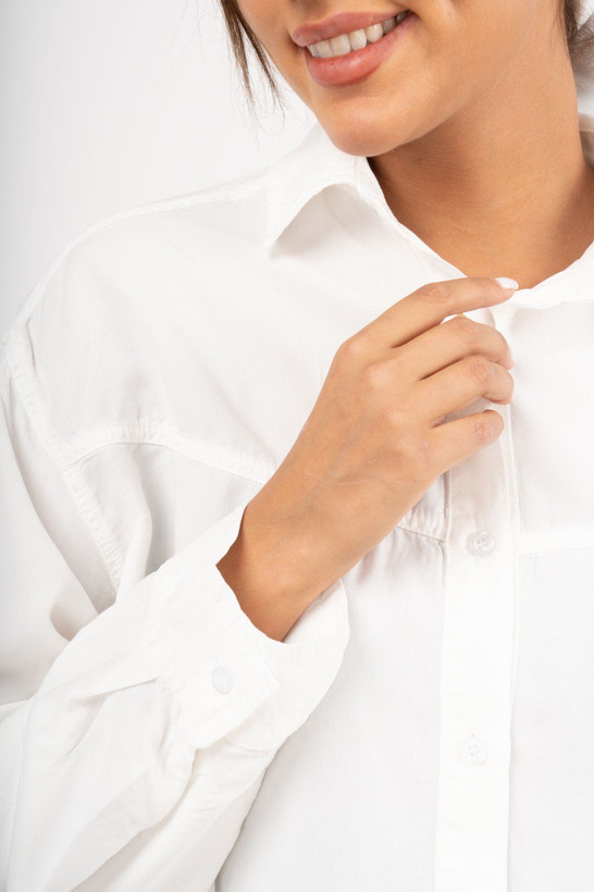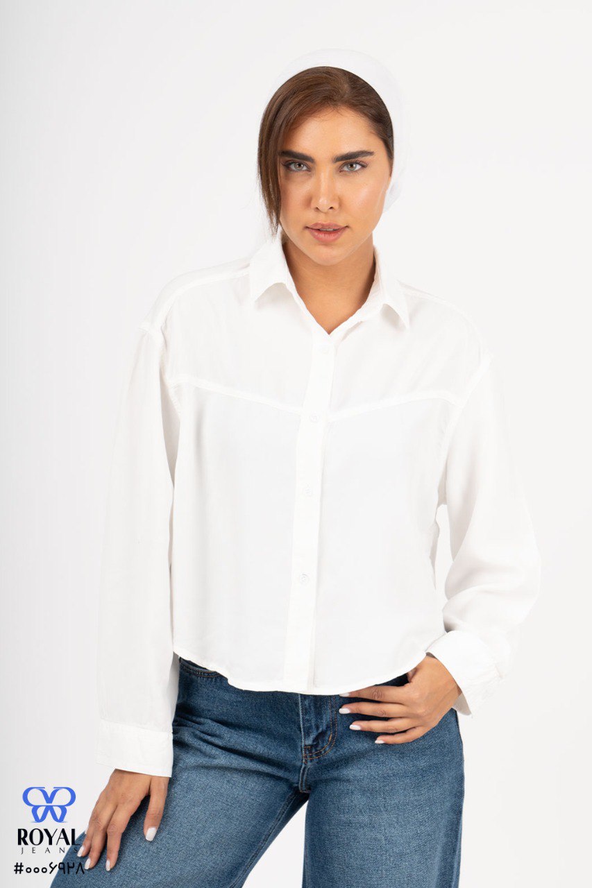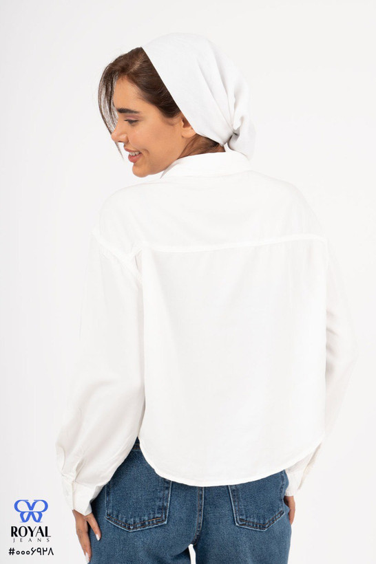 شومیز سیلک کتان نیلوا پایین هلال بدون جیب سفید 0006417