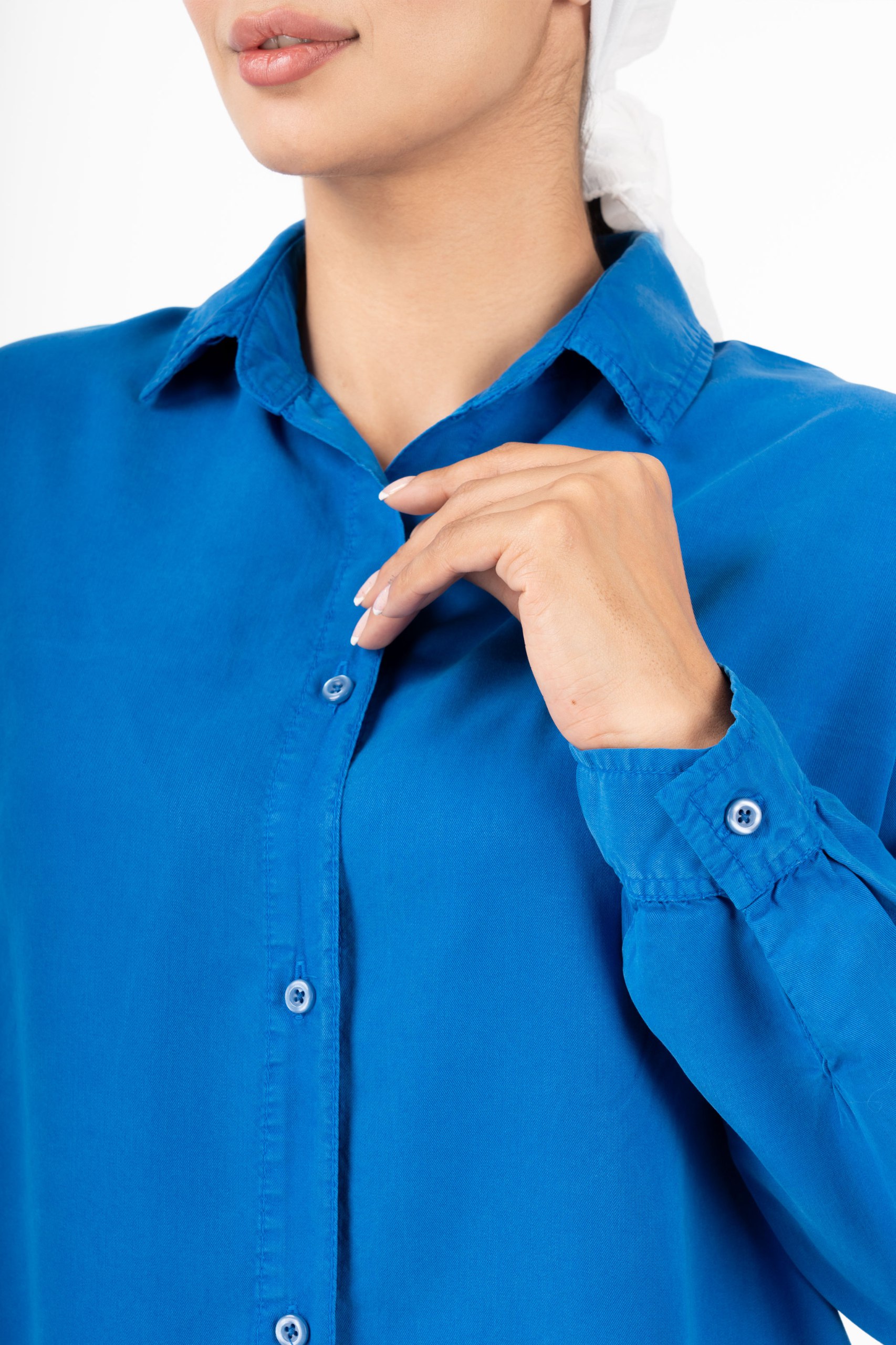 شومیز پایین هلال بدون جیب آبی کاربنی