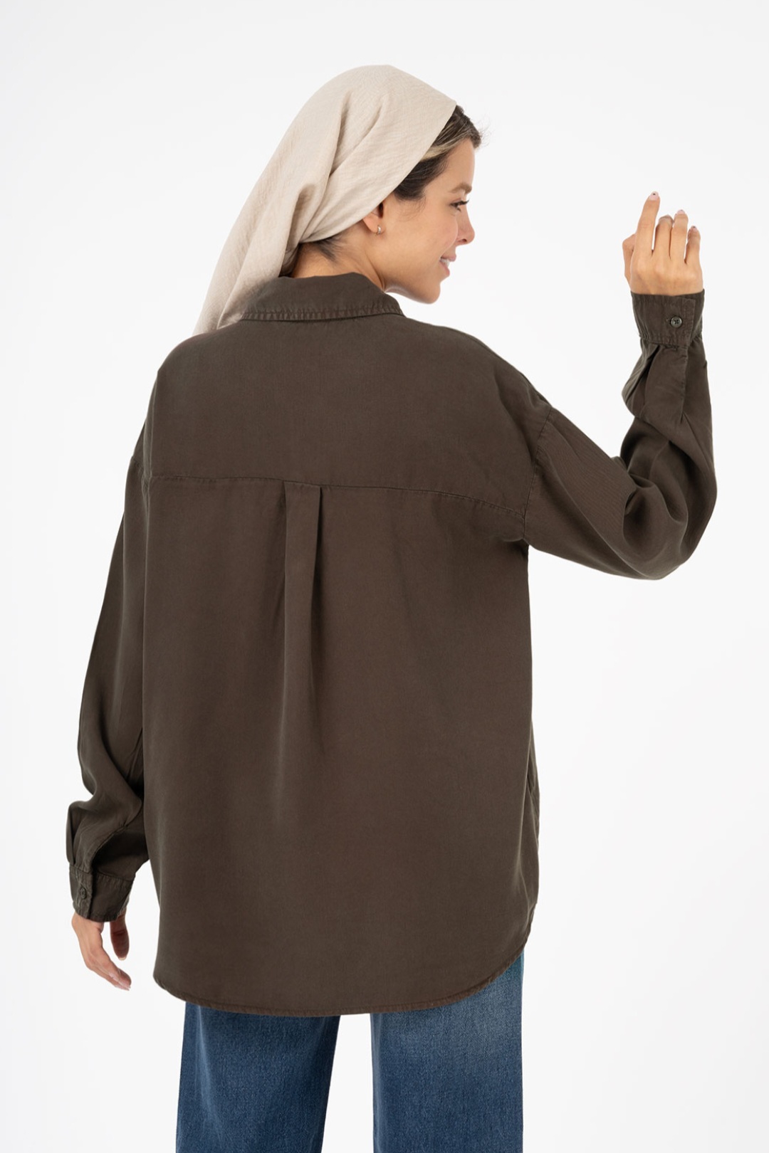 شومیز سونیا پایین هلال بدون جیب قد 70 قهوه ای
