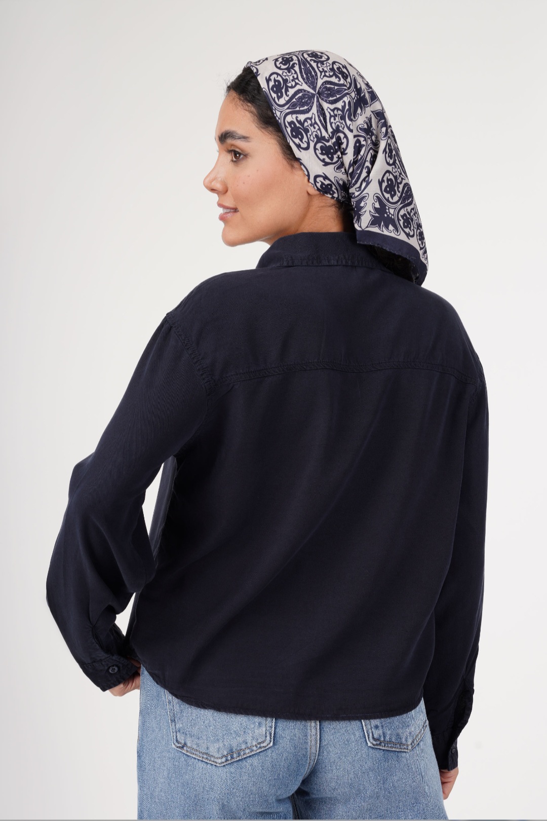 شومیز کتان elva پایین هلال بدون جیب قد 55