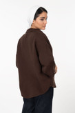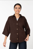 شومیز کتان وستا پایین هلال قهوه ای تیره استین سه ربع قد 70
