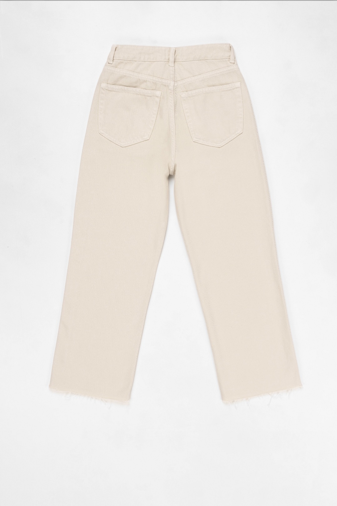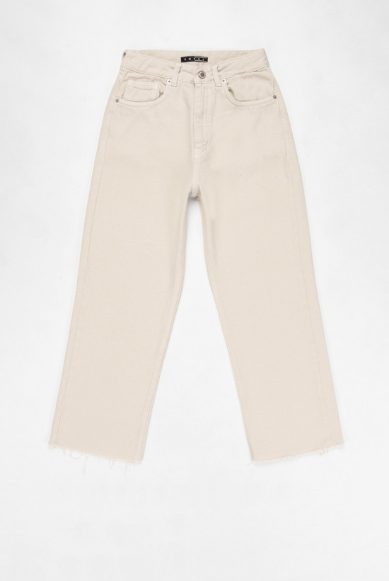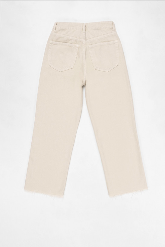 شلوار جین چیل کات کراپ royal jackpot کمر ساده کرم روشن