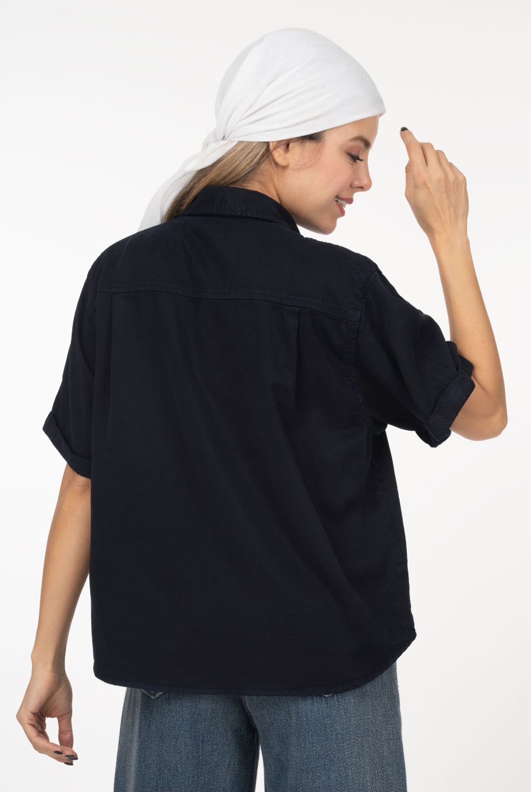 شومیز کتان Liamo آستین کوتاه پاکتی سرمه ای کد: 0007152