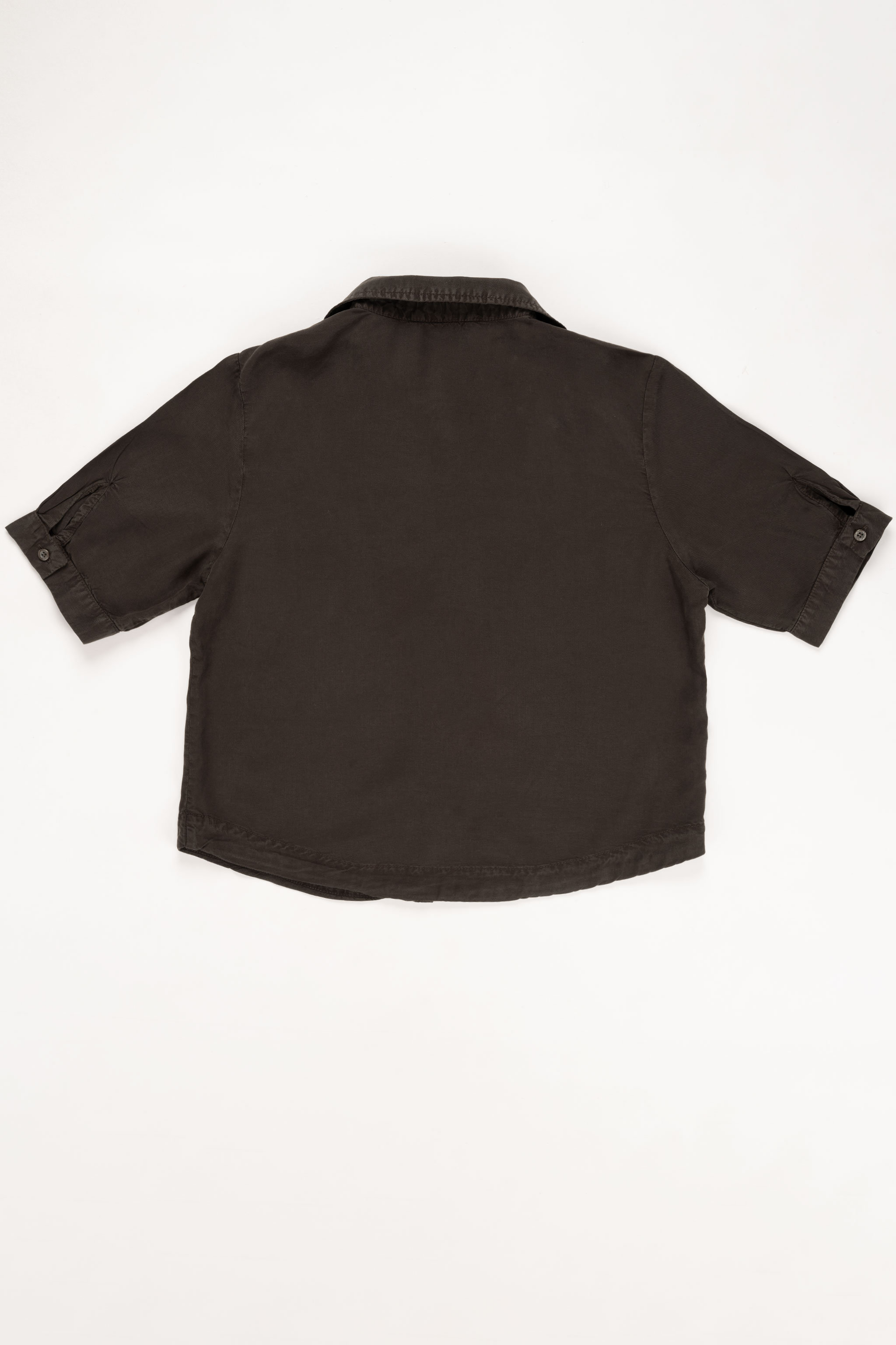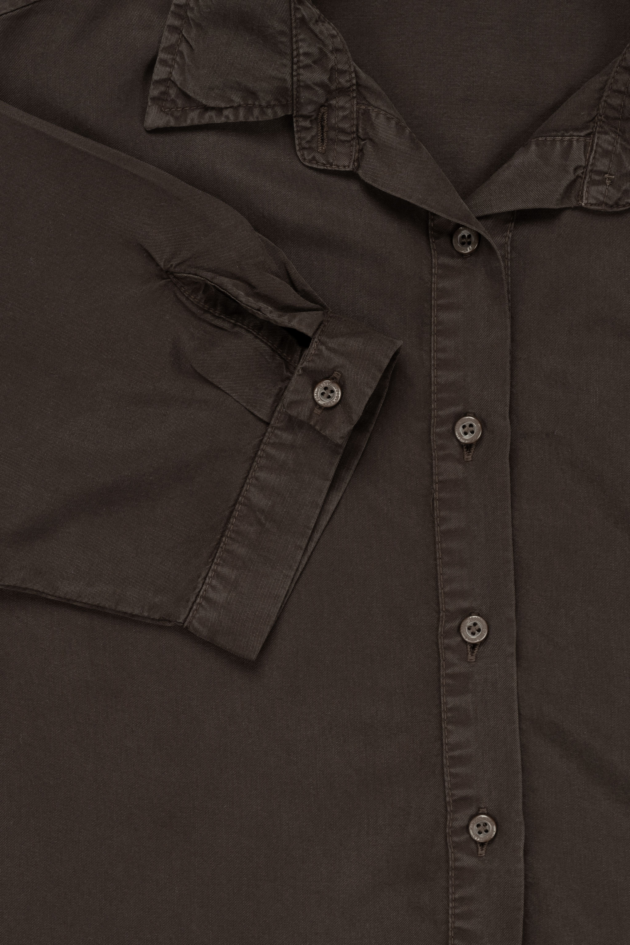 شومیز کتان (Tiva) آستین کوتاه قهوه ای سوخته کد : 0007048