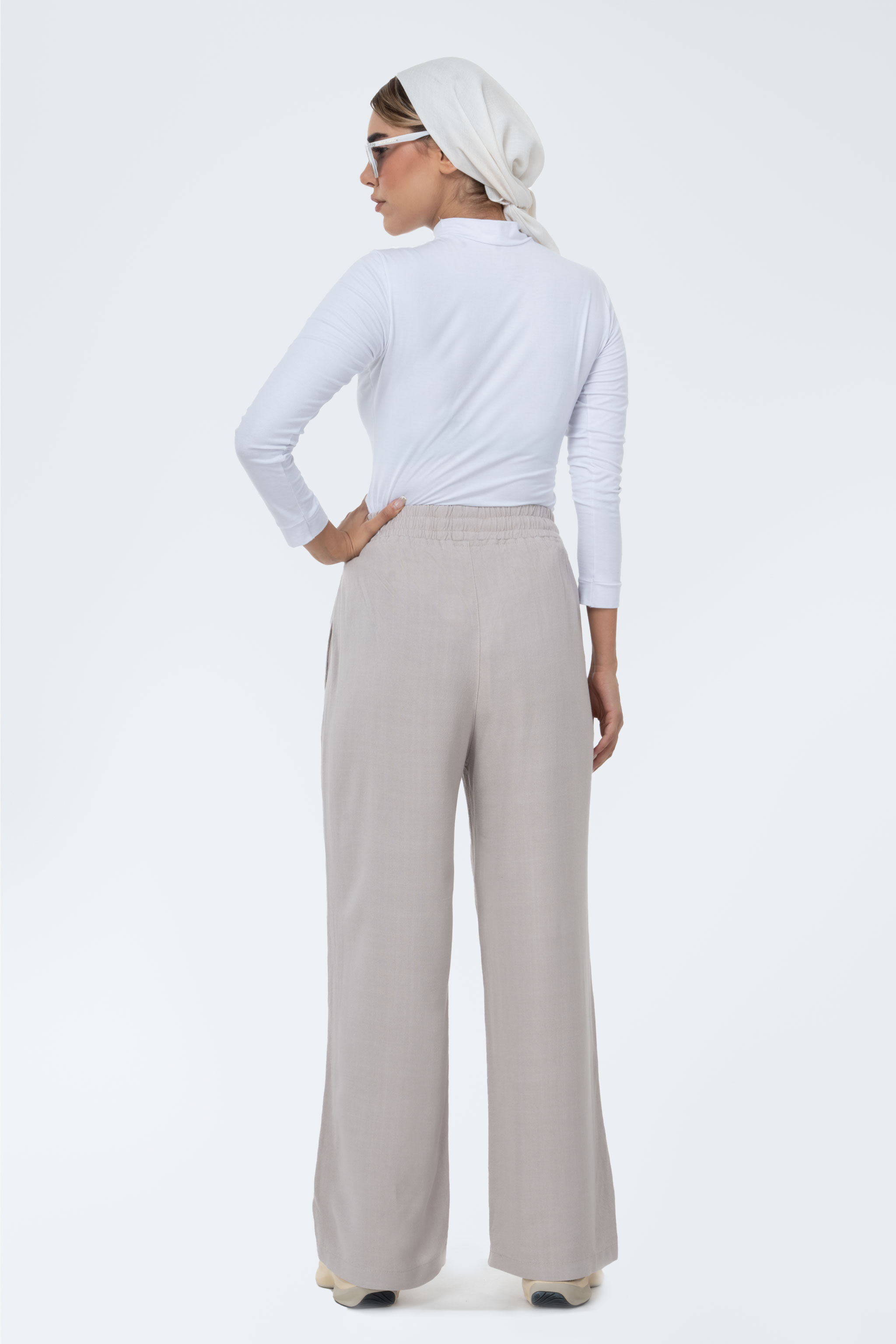 شلوار لینن بگ کمر ٥ سانتی کرم روشن کد: 0001098
