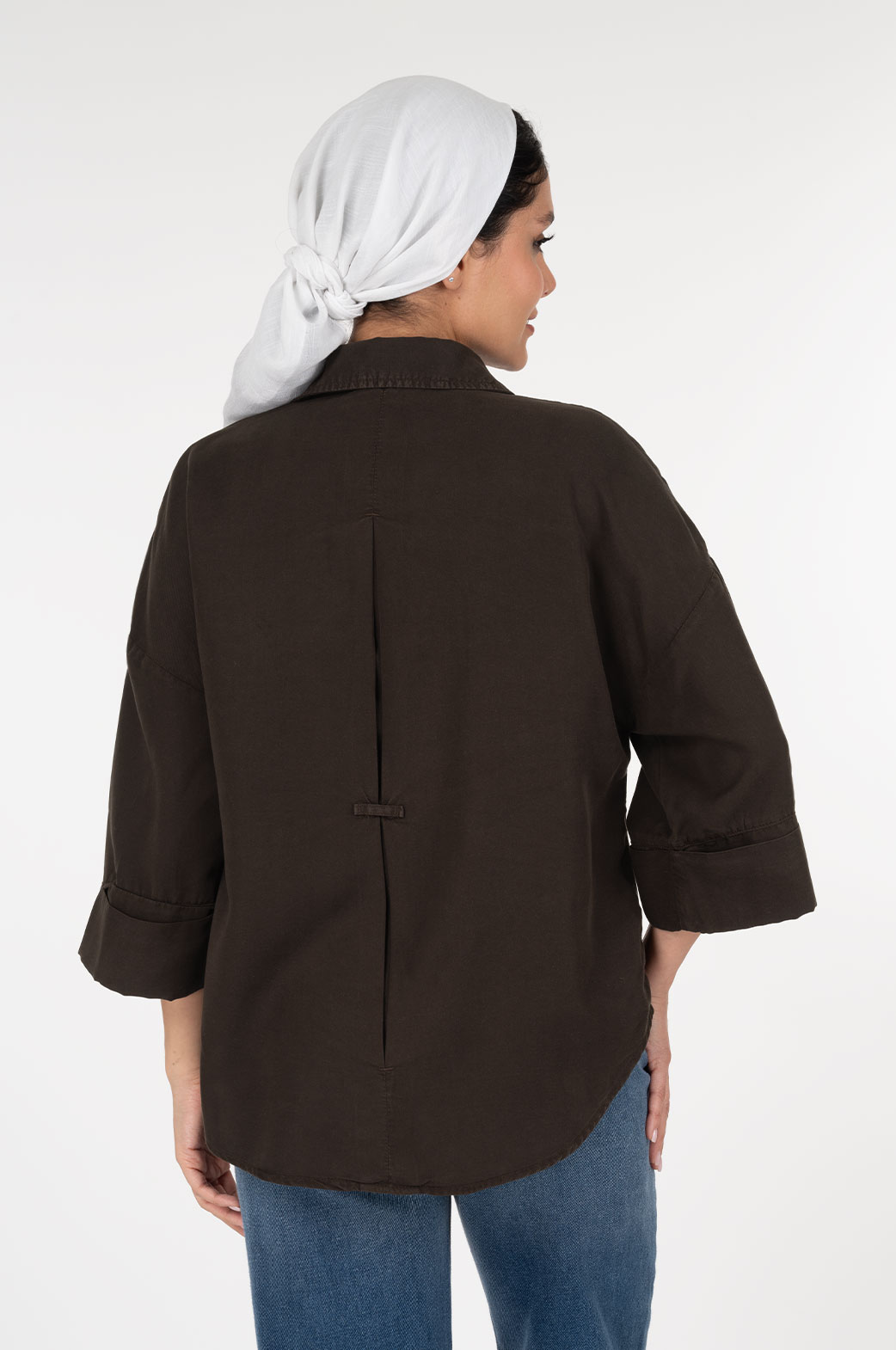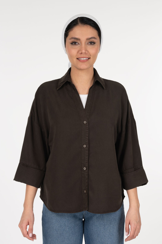 شومیز سیلک اِلا آستین پاکتی- بدون جیب قهوه ای سوخته کد: 2010888