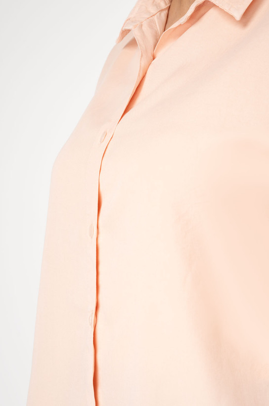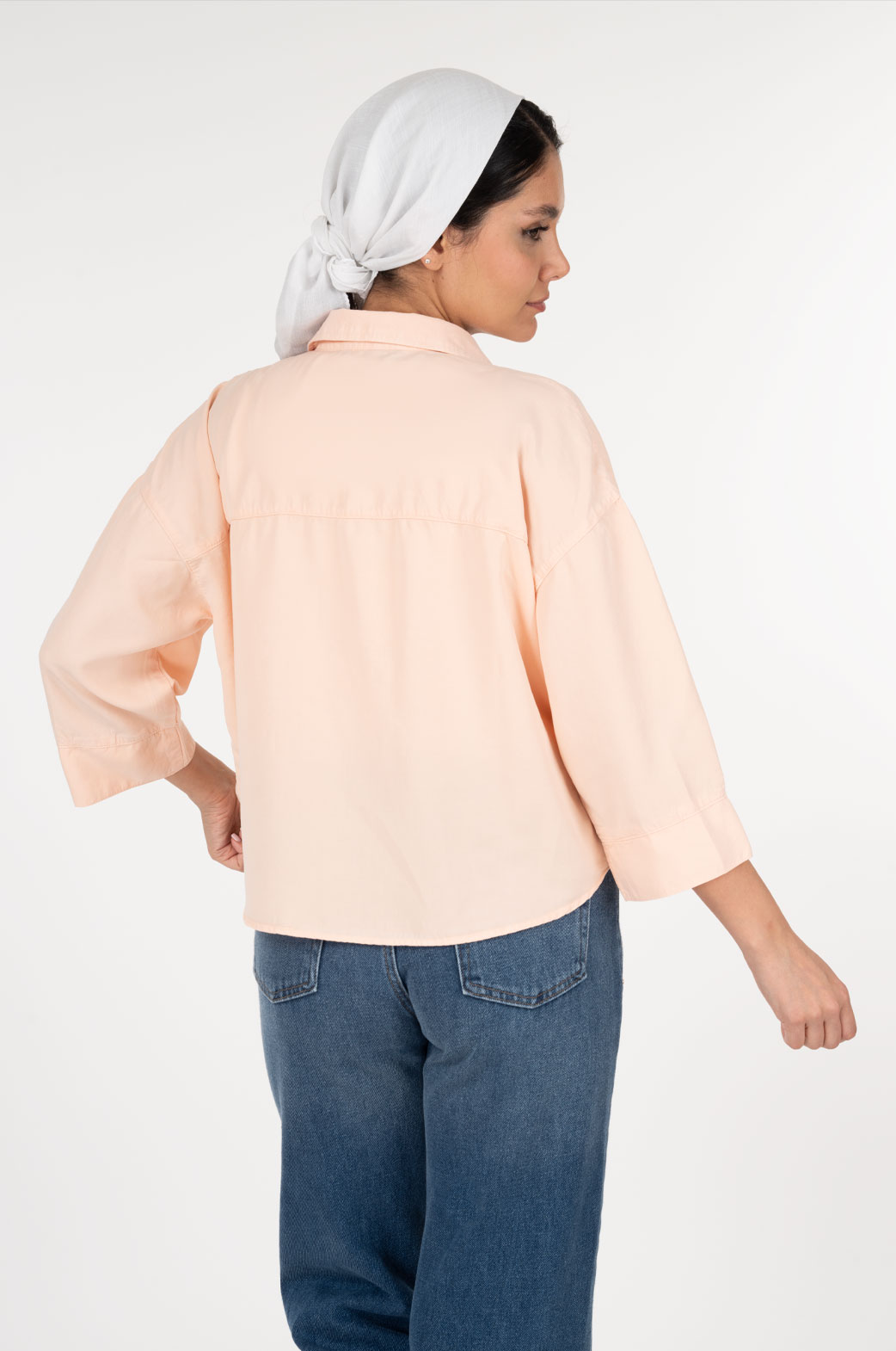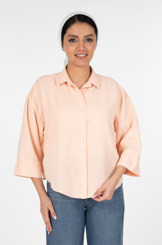 شومیز سیلک کتان کروپین گرم 1- آستین پاکتی بدون جیب گلبهی کد: 2010978