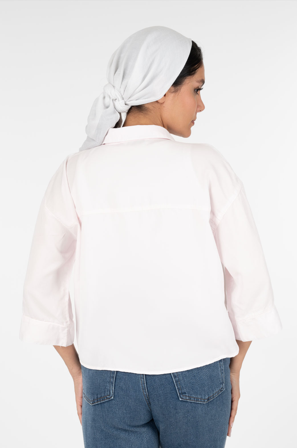 شومیز سیلک کتان کروپین گرم 1- آستین پاکتی بدون جیب صورتی پودری
