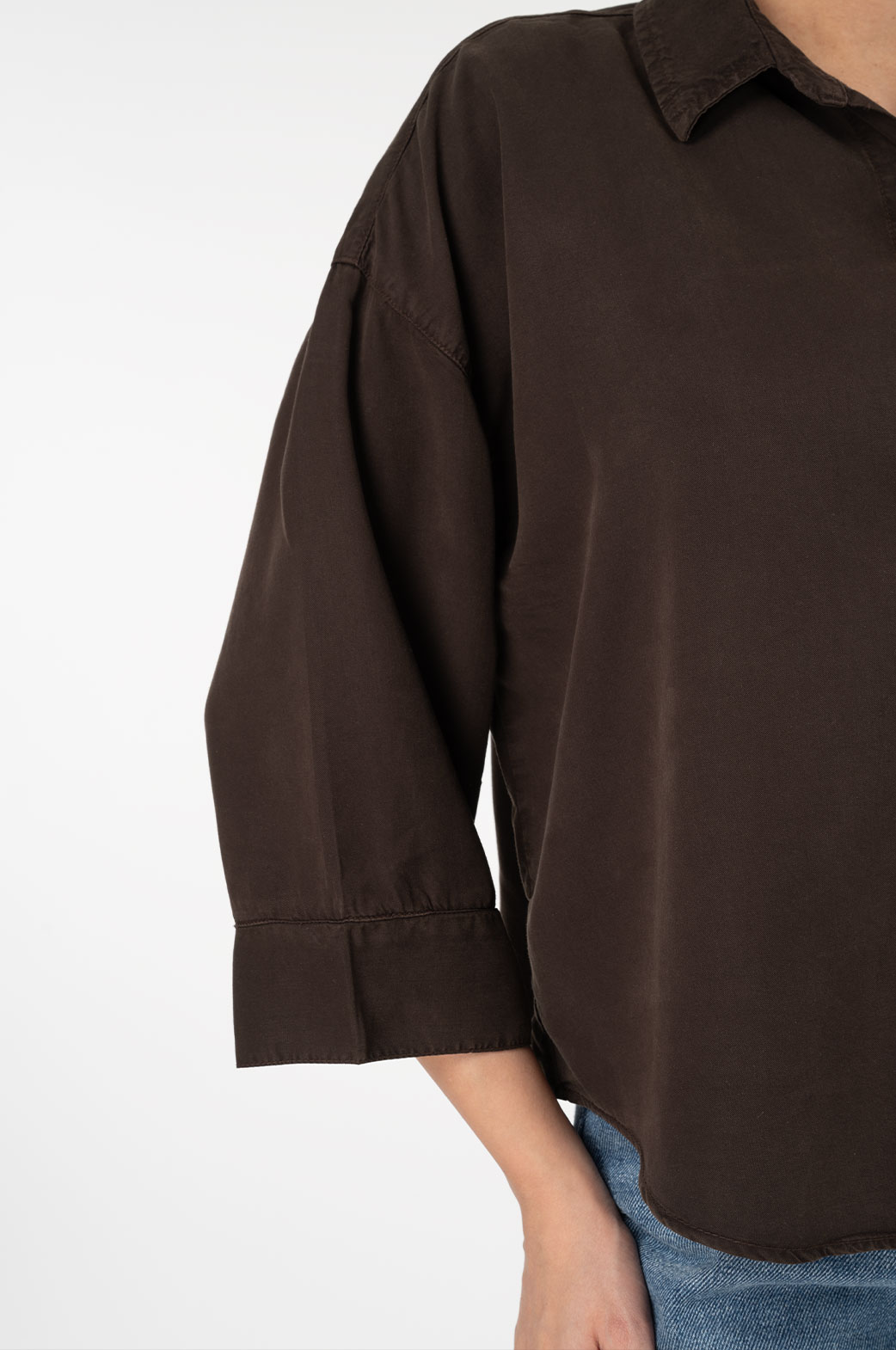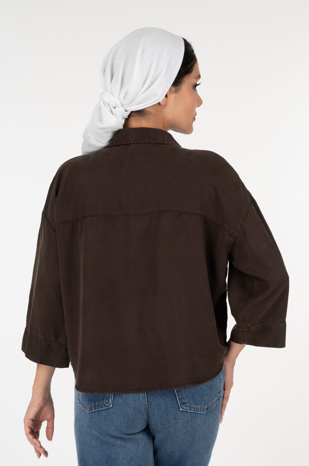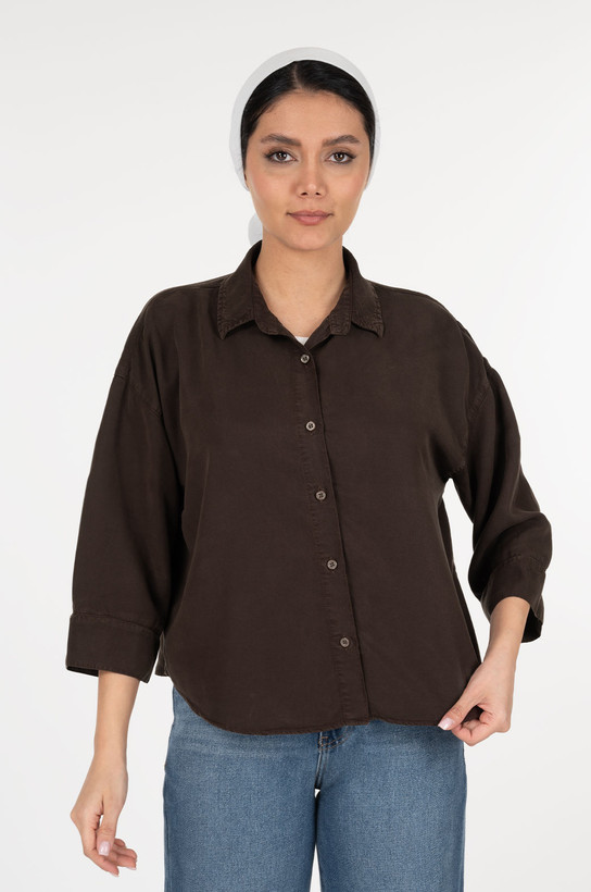 شومیز سیلک کتان کروپین گرم 1- آستین پاکتی بدون جیب قهوه ای سوخته