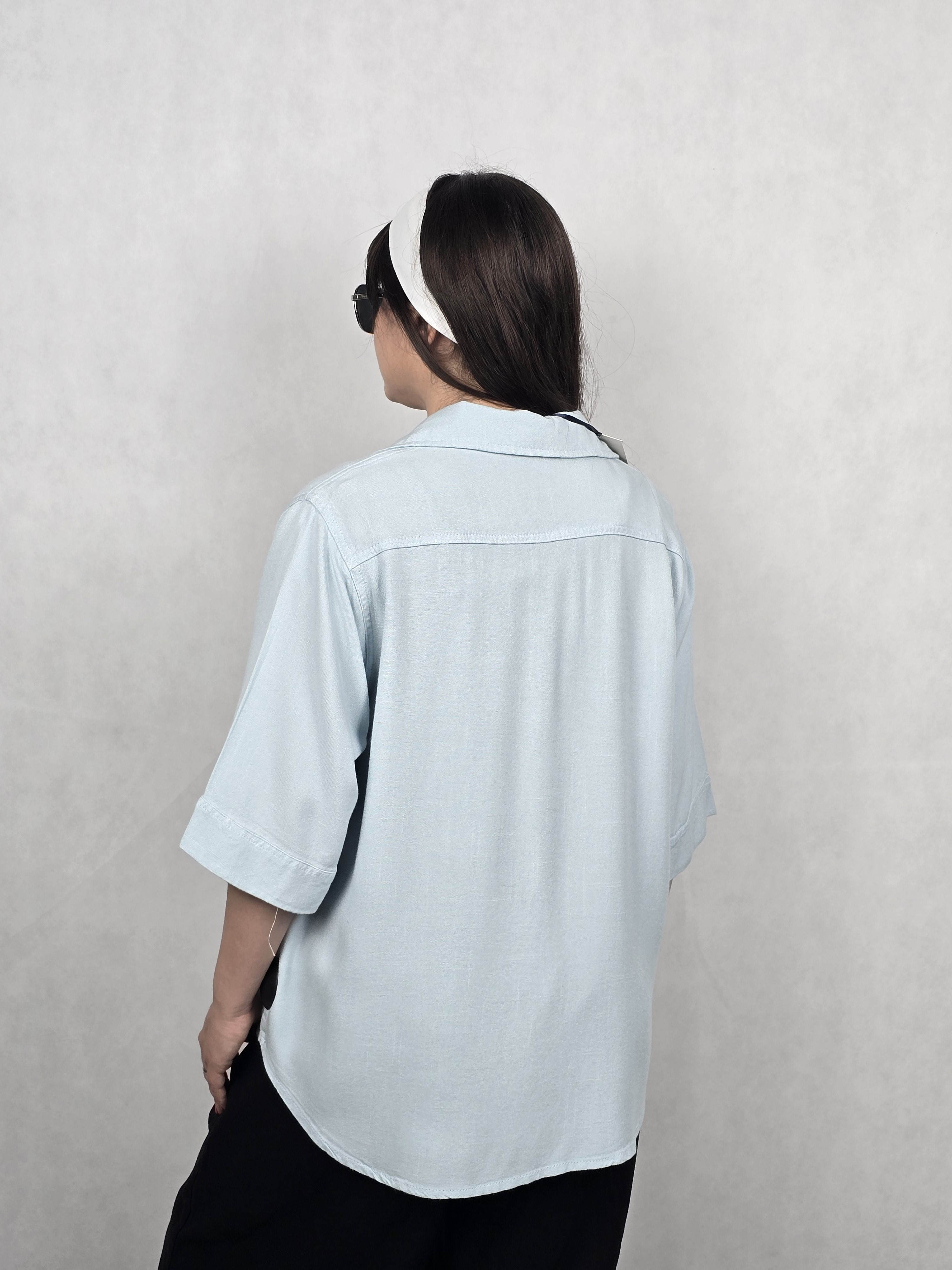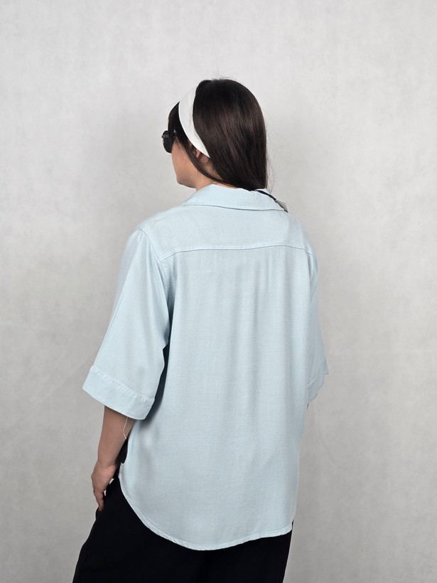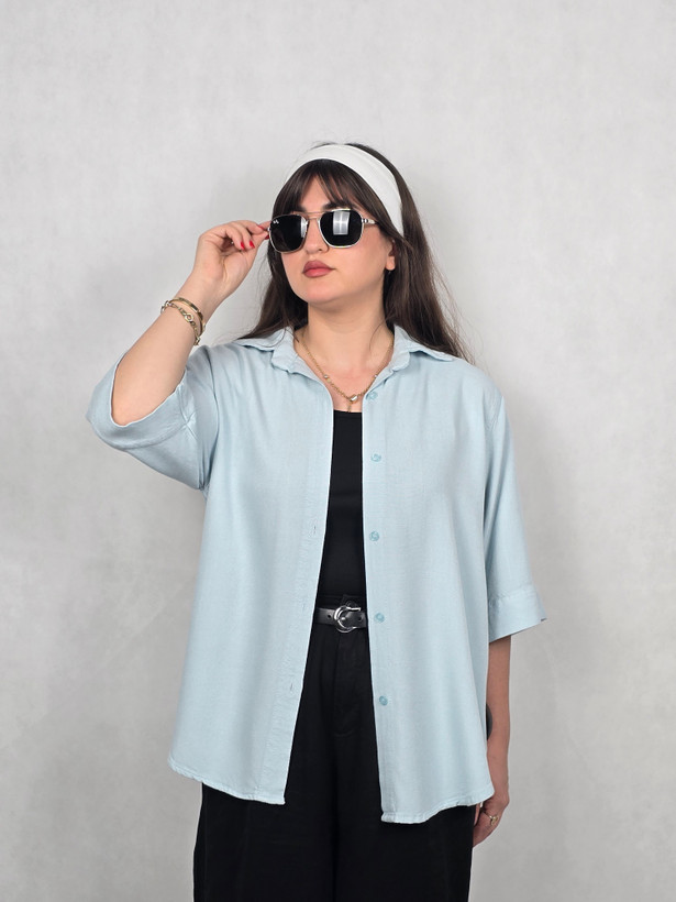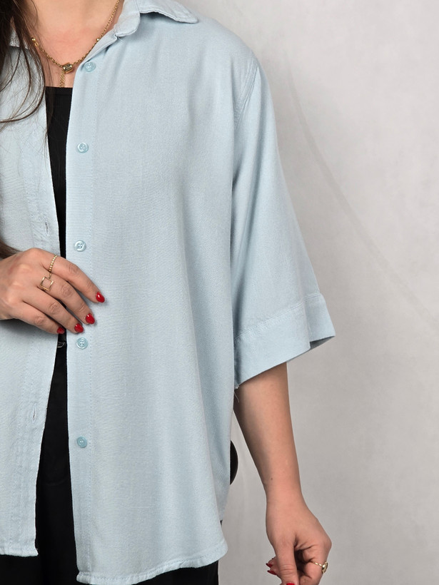 شومیز لینن اسلپ آستین سه ربع آبی آسمانی