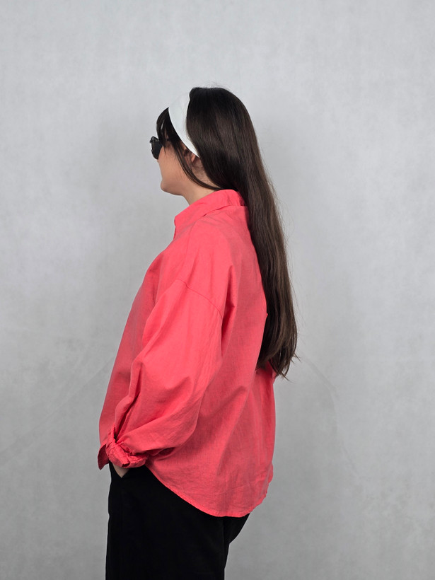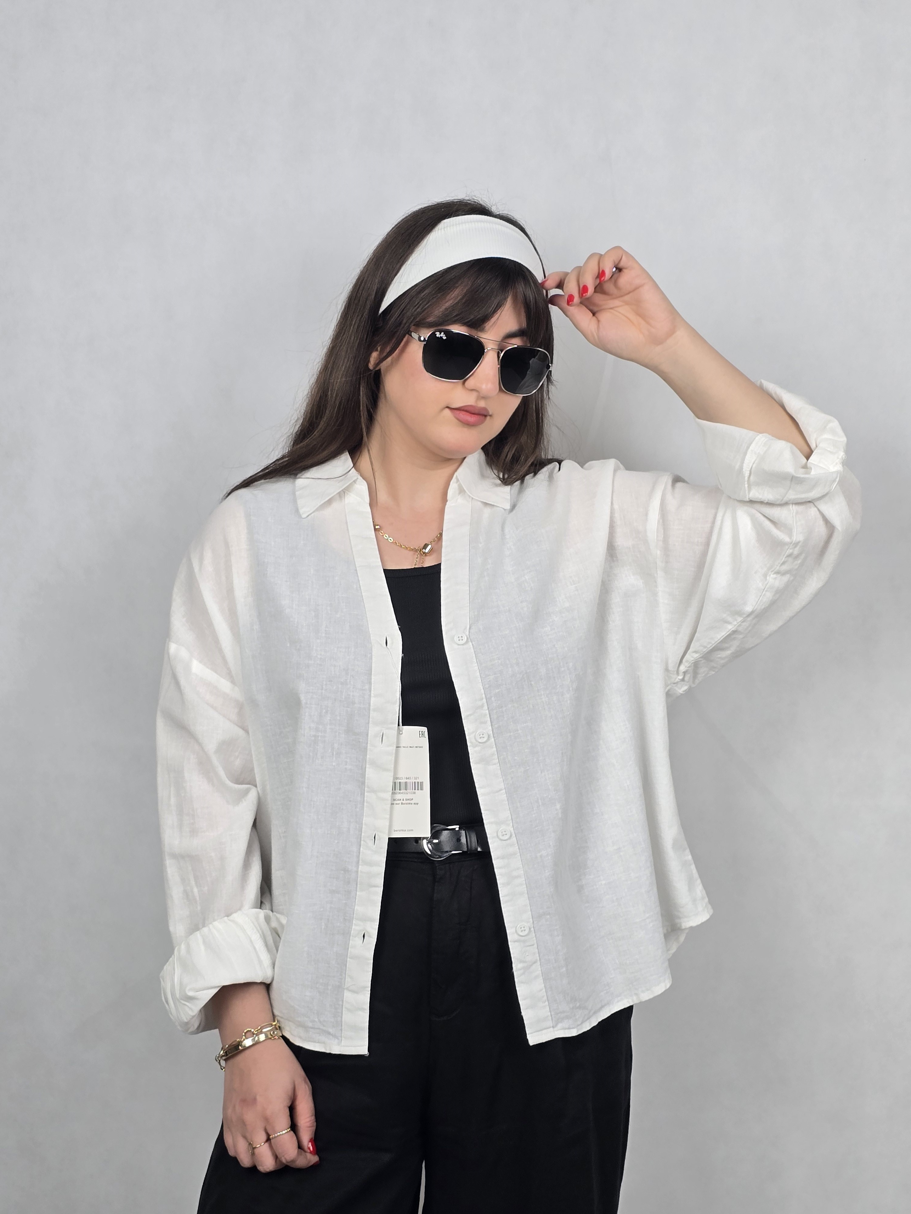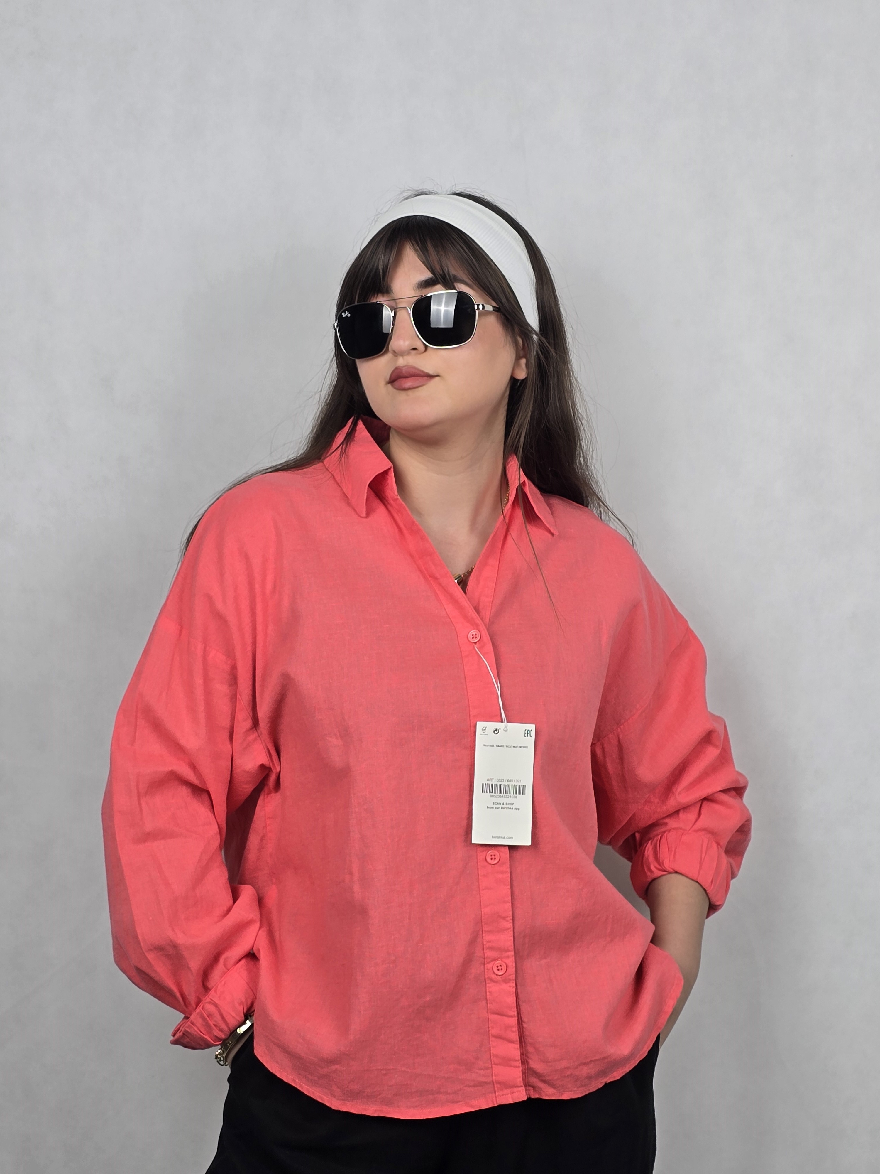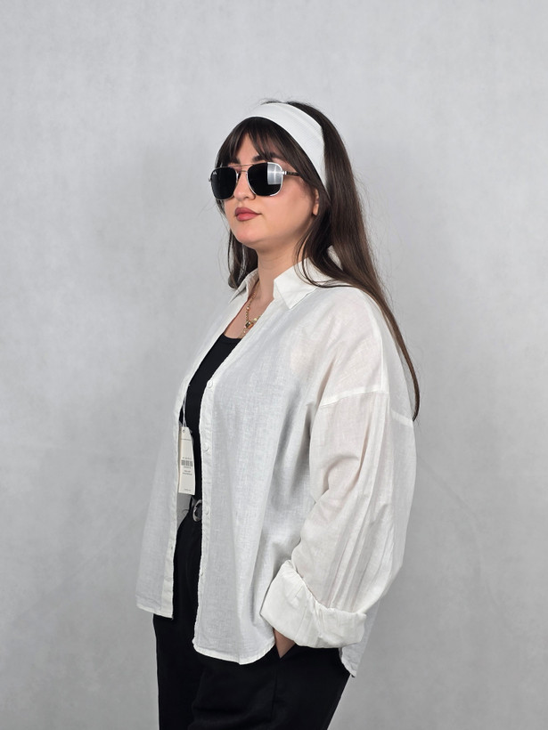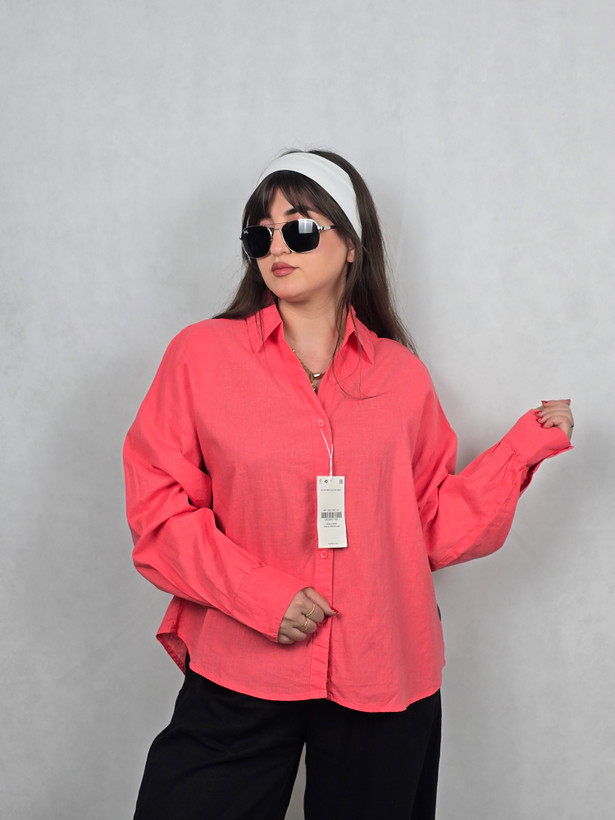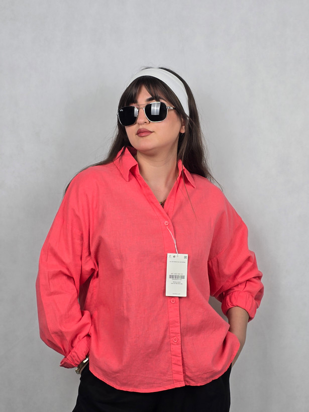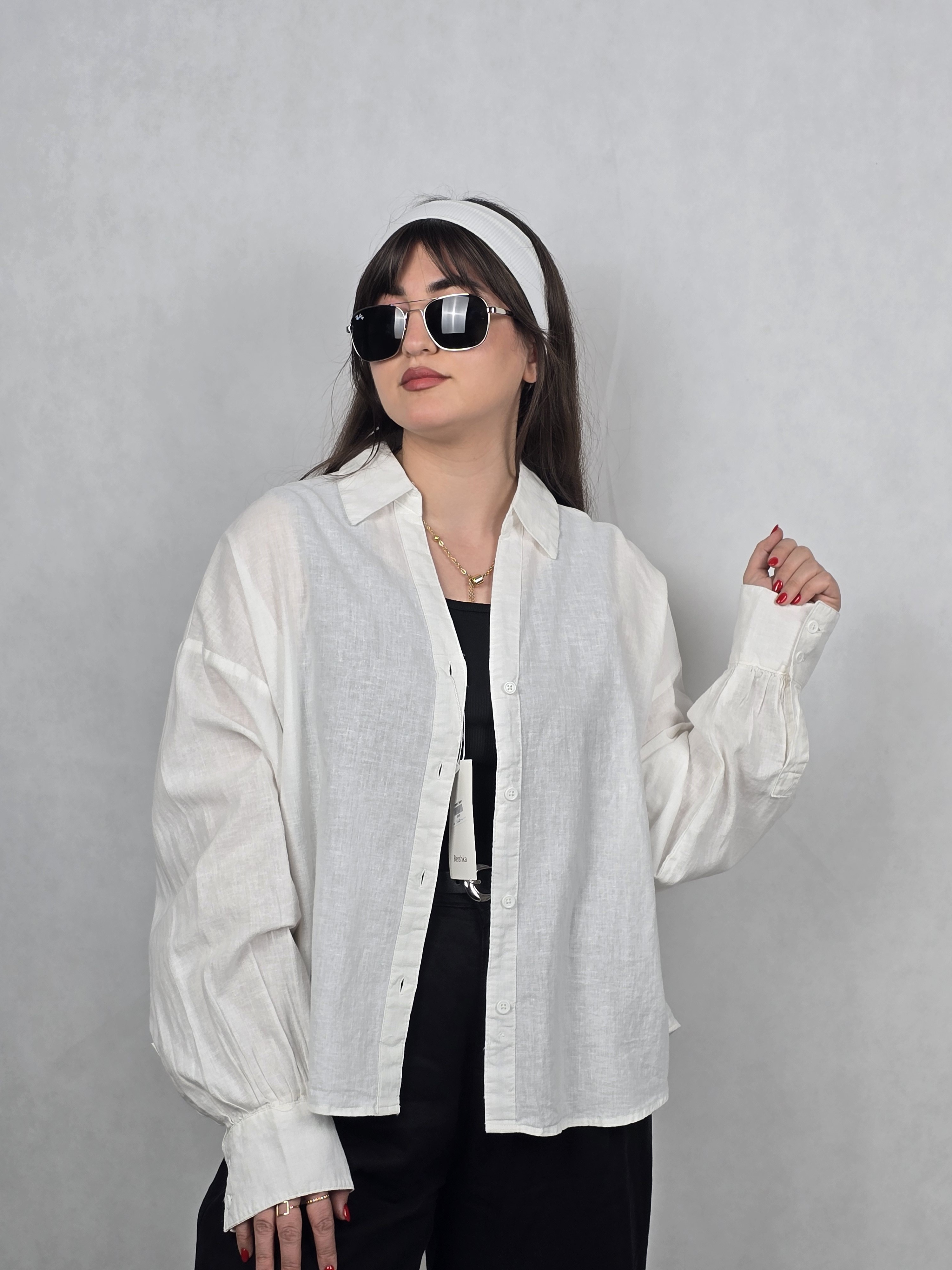شومیز لینن آستین عروسکی اورجینال BERESHKA
