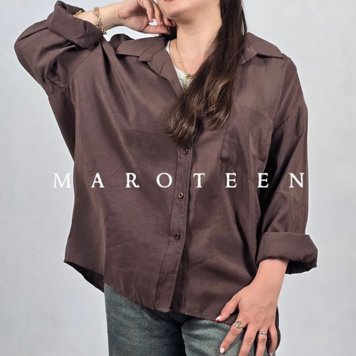 شومیز کتان سیلک ملورین پایین هلال گرم 2 پایین هلال بدون جیب قهوه ای تیره 0006504