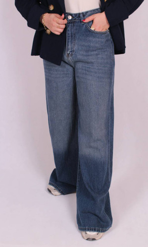 شلوار جین long wide leg کمرساده جیب کراس دمپا زاپ